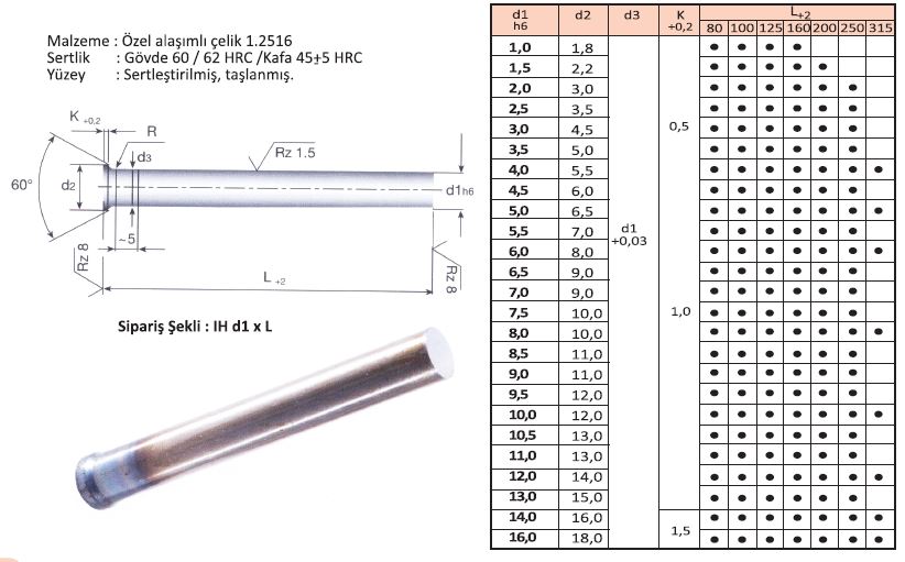 Havşa Başlı İtici Pimler/IH Ejector Pins Din 1530 D